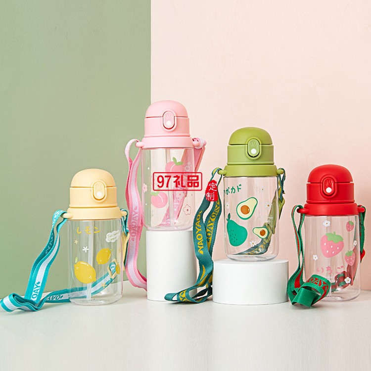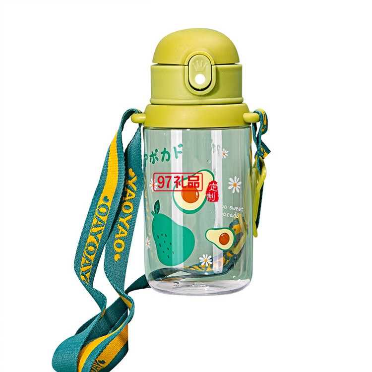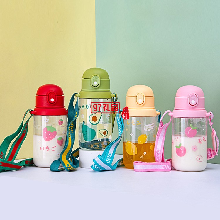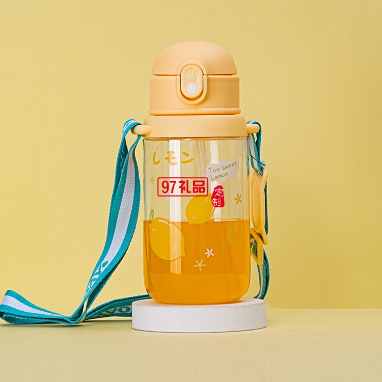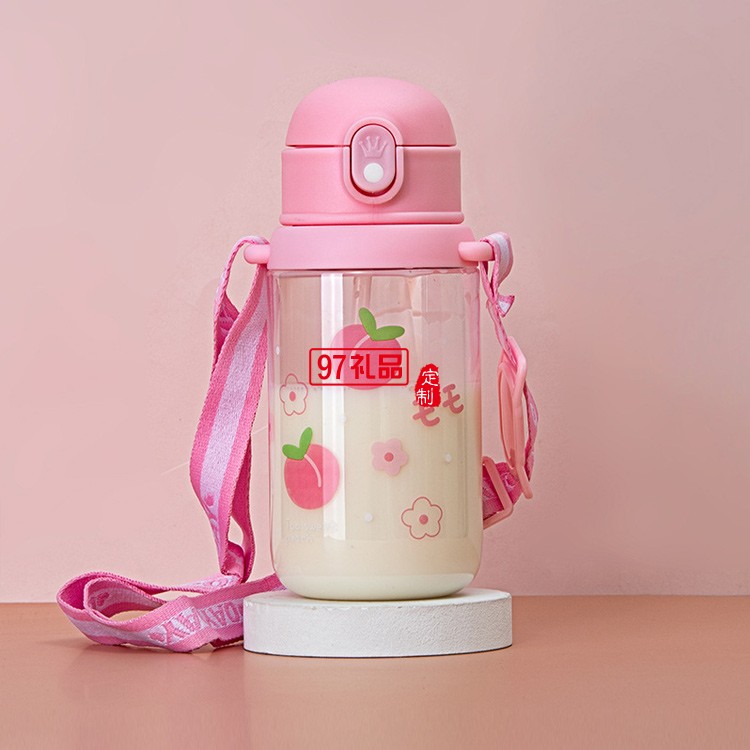 兒童吸管杯背帶提繩便攜水壺彈蓋水杯