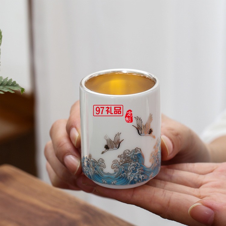 鎏銀茶具套裝琺瑯彩99純銀整套功夫茶具辦公家用高檔泡茶壺品茗杯