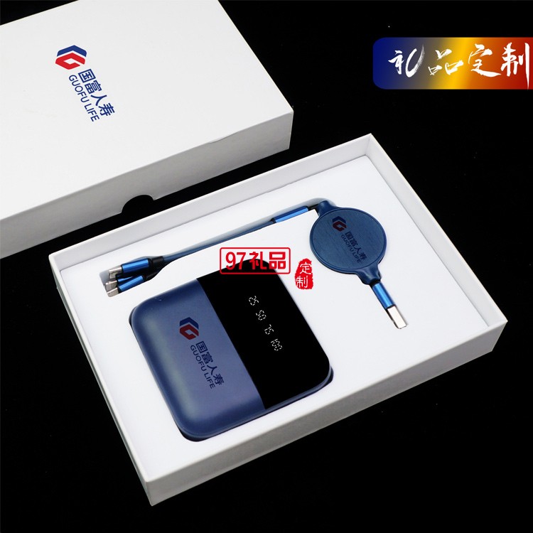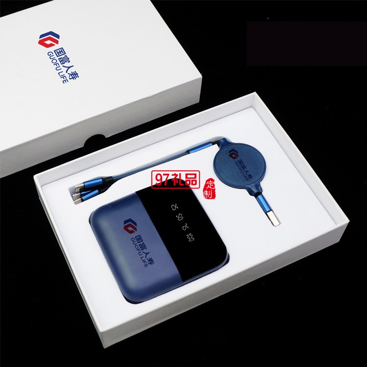 實(shí)用商務(wù)禮品套裝 充電寶10000毫安移動(dòng)電源一拖三數(shù)據(jù)線定制logo