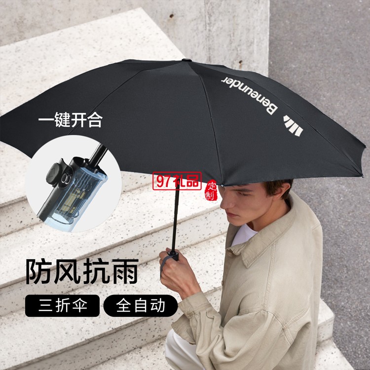 起始自動(dòng)傘男雨傘大號(hào)結(jié)實(shí)抗風(fēng)雙人反向傘三折傘女晴雨兩用定制公司廣告禮品