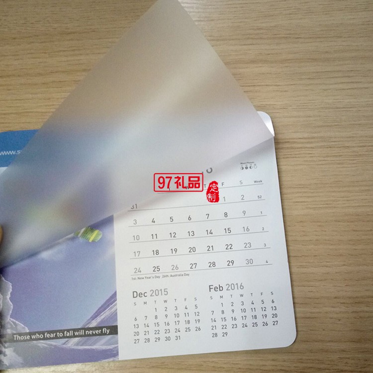 品名:   PVC翻頁日歷廣告鼠標(biāo)墊                               材料:   PVC+紙+EVA/橡膠                                             規(guī)格:   24*20CM  (大小規(guī)格可定制)