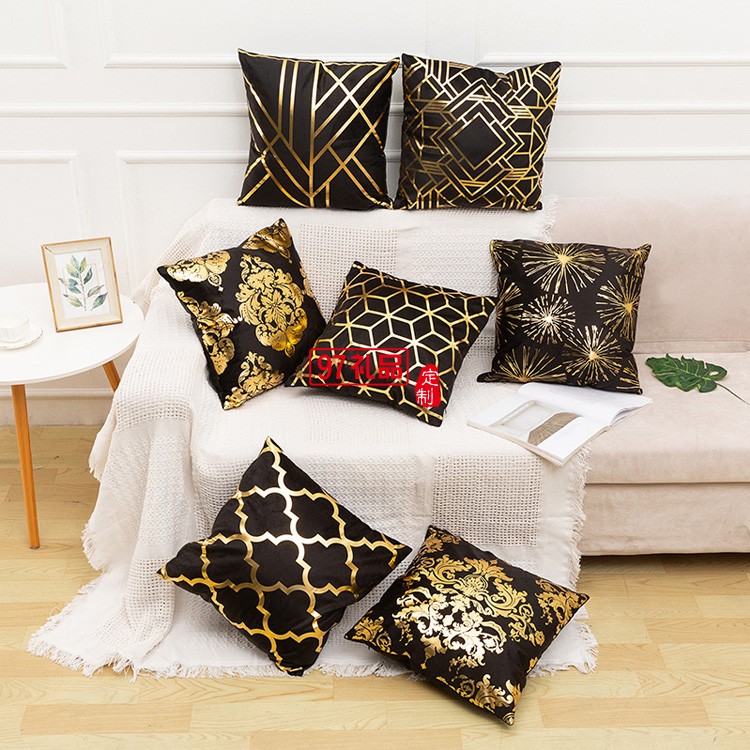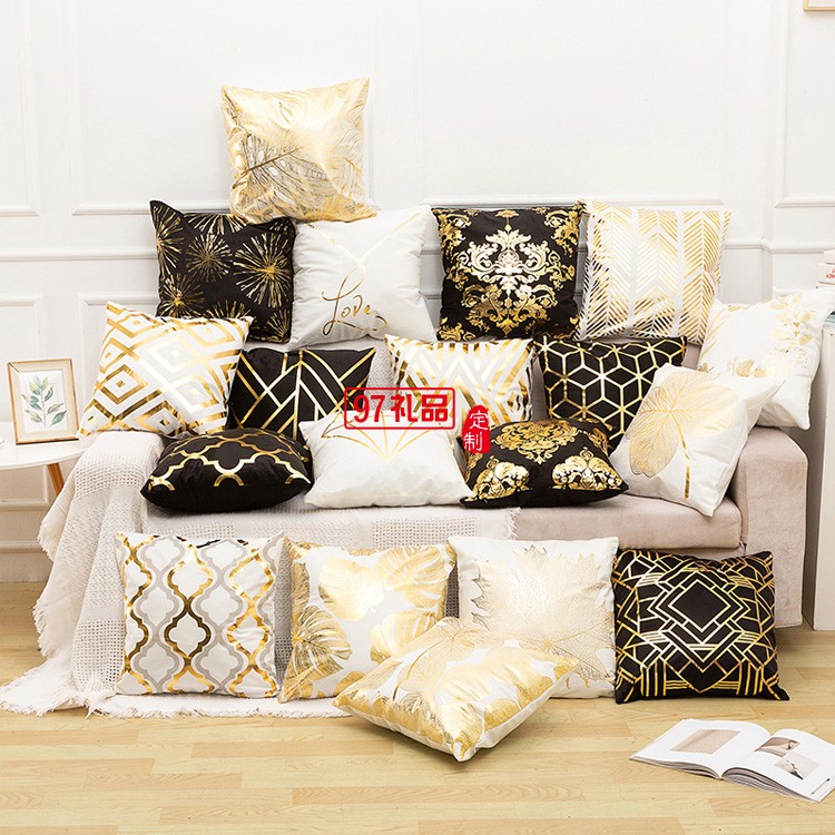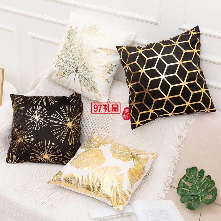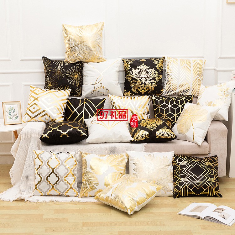 燙金抱枕定制抱枕套沙發(fā)靠枕汽車(chē)靠墊套短毛絨ins北歐輕奢辦公室