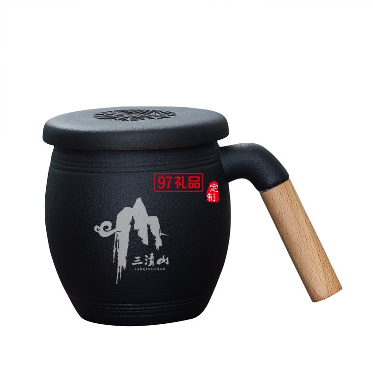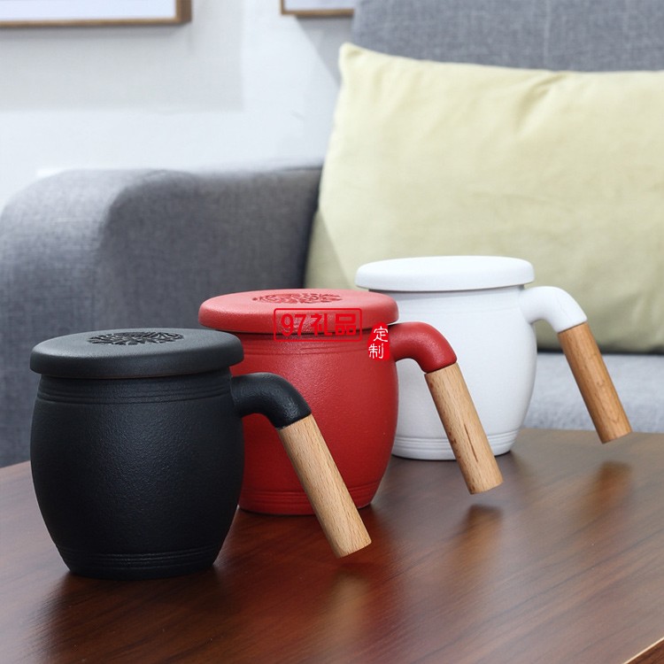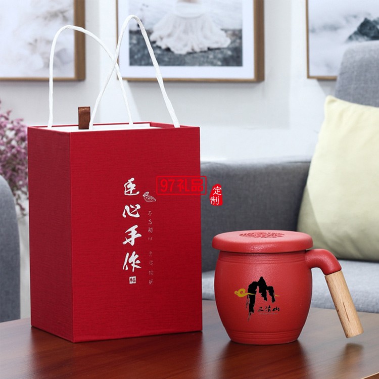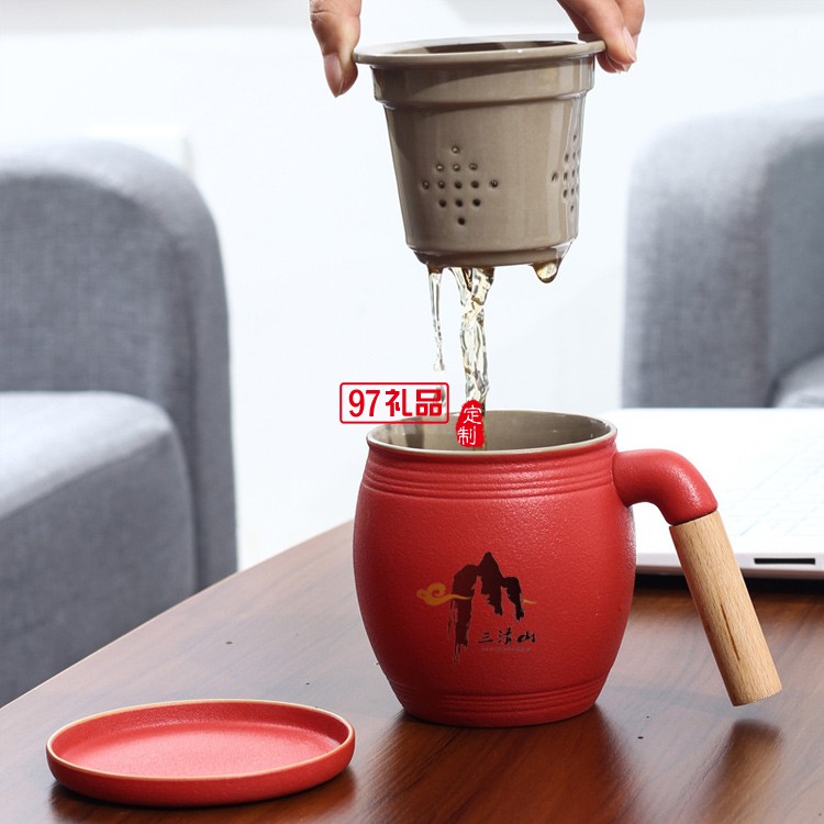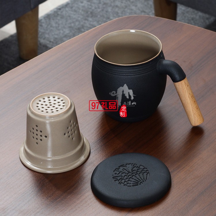 木柄茶水分離馬克杯帶蓋帶過(guò)濾網(wǎng)禮盒裝