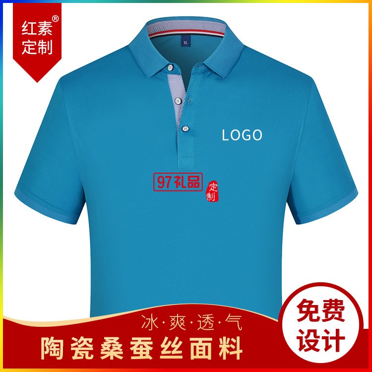陶瓷桑蠶絲翻領(lǐng)短袖Polo杉員工服飾廣告衫印LOGO公司禮品定制