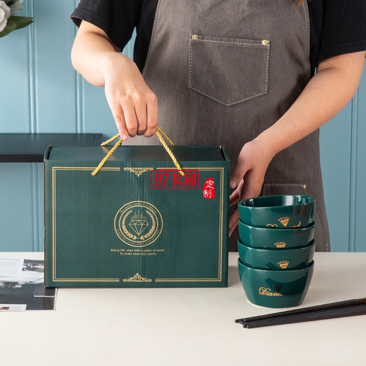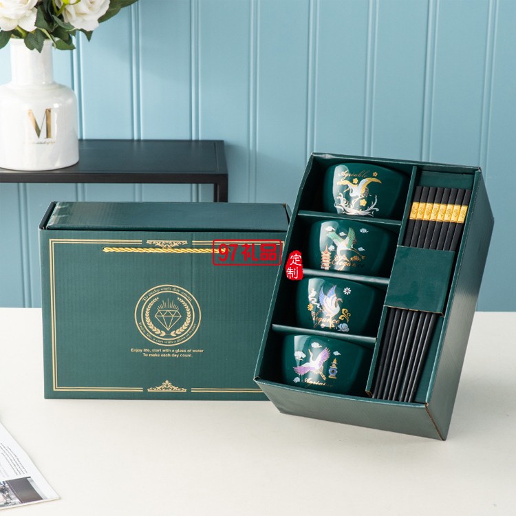 國(guó)潮風(fēng)開(kāi)業(yè)活動(dòng)禮品碗筷套裝方碗陶瓷餐具禮盒套裝碗
