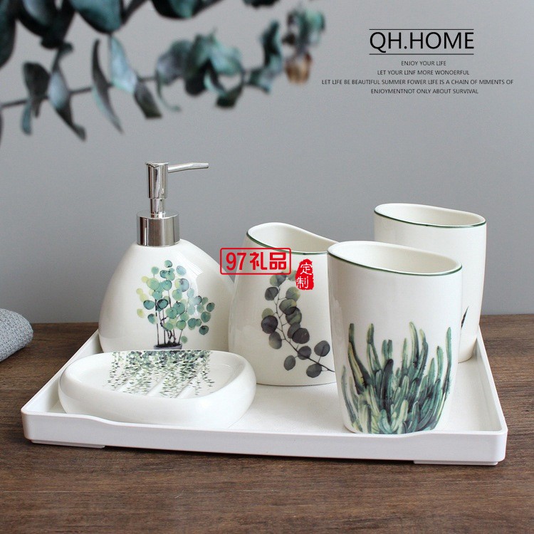 衛(wèi)浴五件套北歐陶瓷洗漱六件套浴室用品套裝結(jié)婚洗漱套裝配托盤