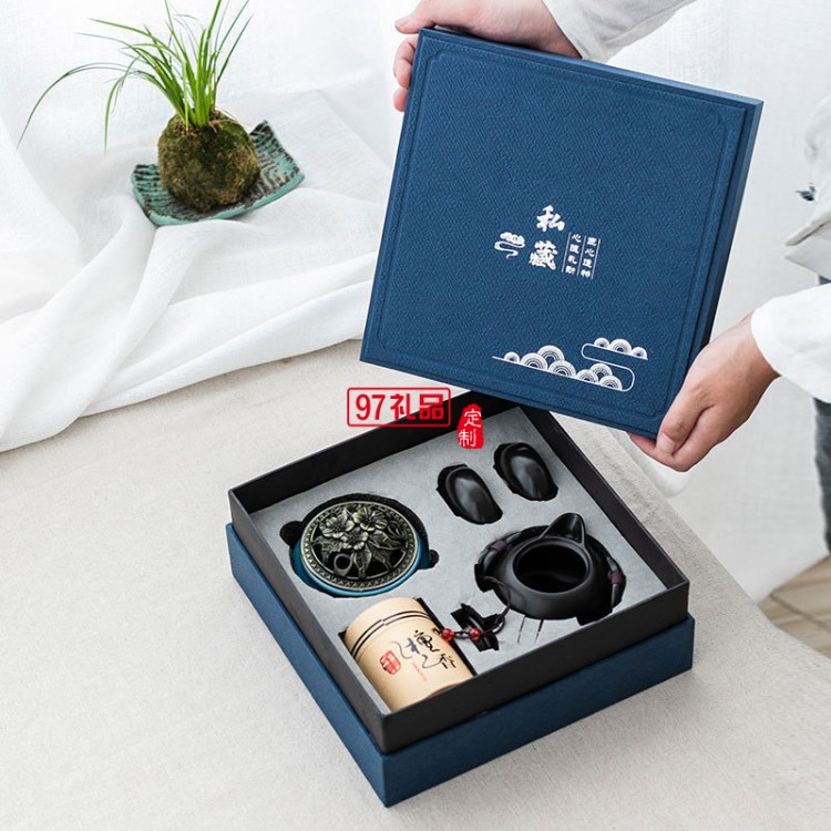 文化創(chuàng)意商務(wù)禮品香道茶具組合檀香爐陶瓷功夫茶具