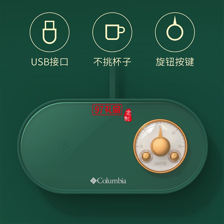 哥倫比亞戶(hù)外品牌定制USB恒溫暖杯墊復(fù)古懷表辦公家用便攜恒溫杯墊