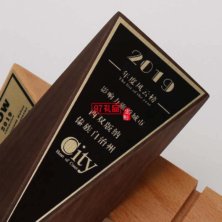 黑胡桃木獎杯實木定制櫸木獎牌定做企業(yè)周年禮品