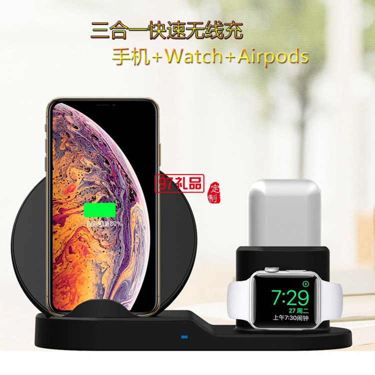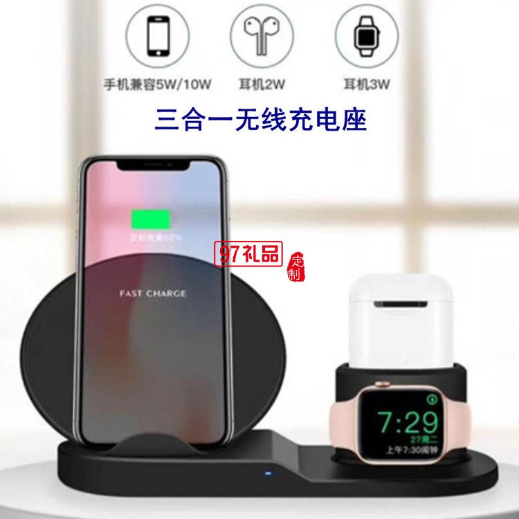 三合一立式手機(jī)支架無(wú)線充電器定制公司廣告禮品