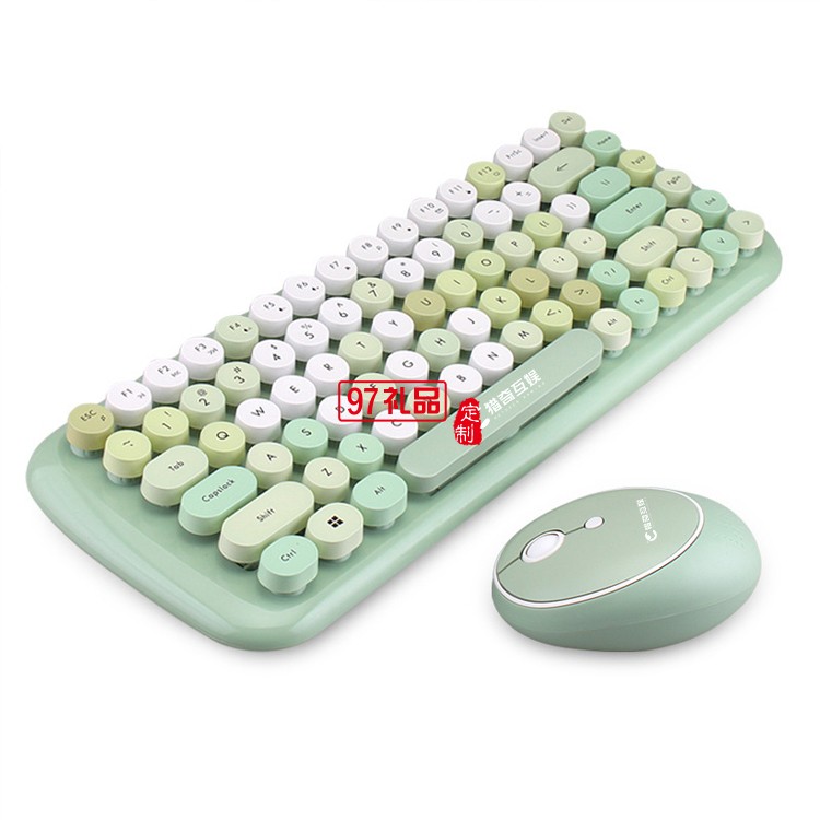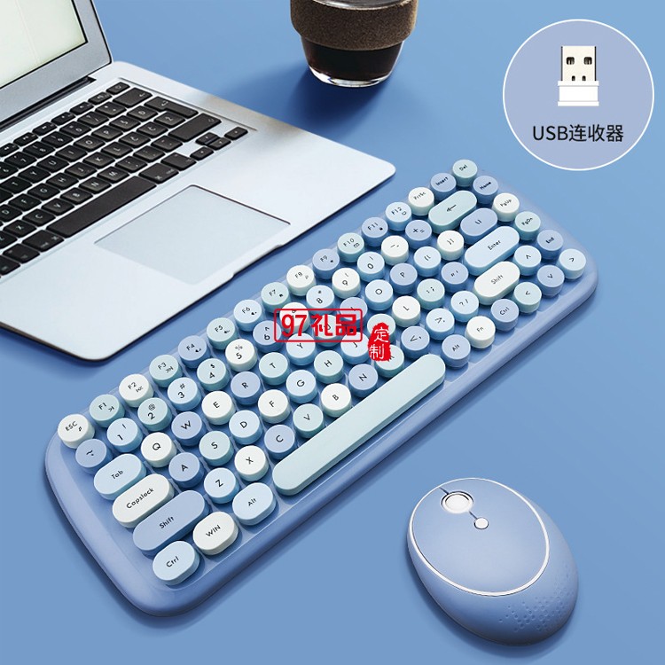 迷你無線鍵盤鼠標(biāo)套裝 朋克鍵帽 多彩