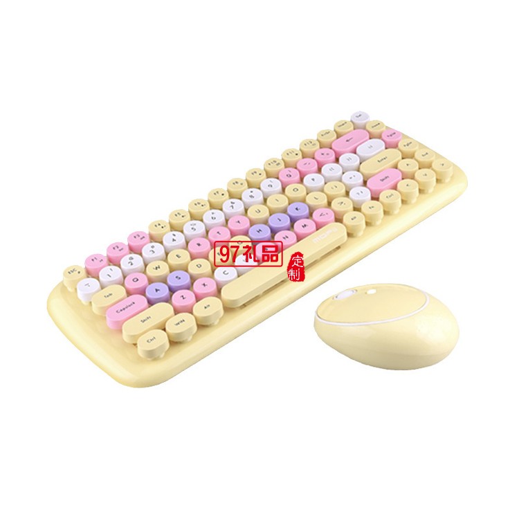 女生朋克無線鍵盤鼠標(biāo)辦公套裝 混彩