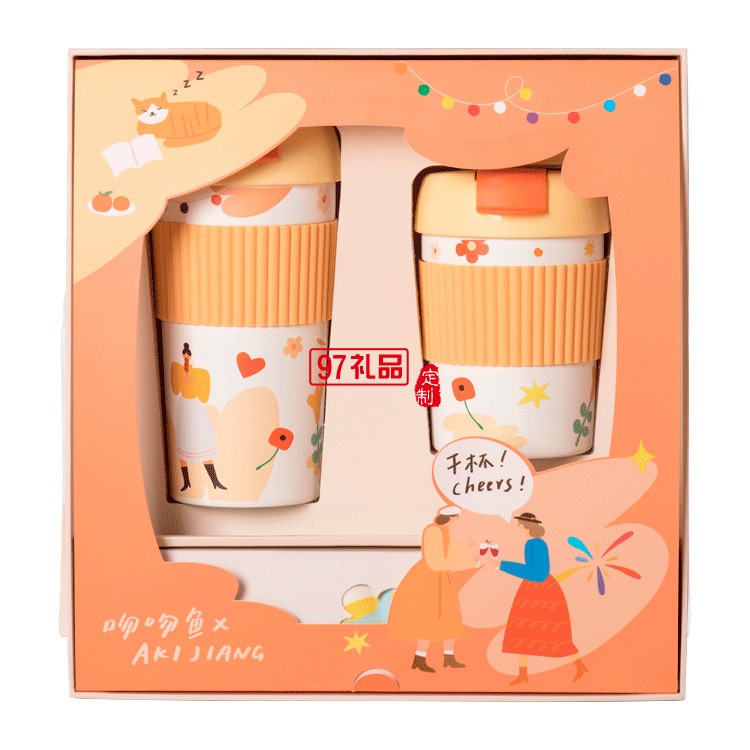 吻吻魚(yú)保溫杯原創(chuàng)插畫(huà)可愛(ài)網(wǎng)紅款少女心ins咖啡便攜精致隨行水杯