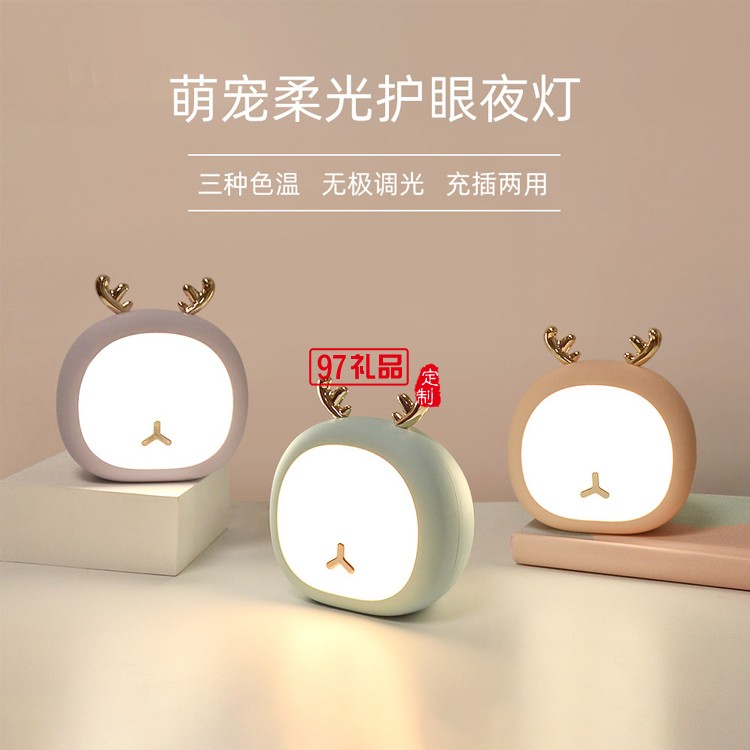 USB三檔亮度充電夜燈卡通萌寵小鹿小兔