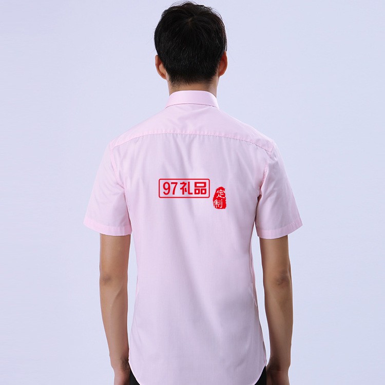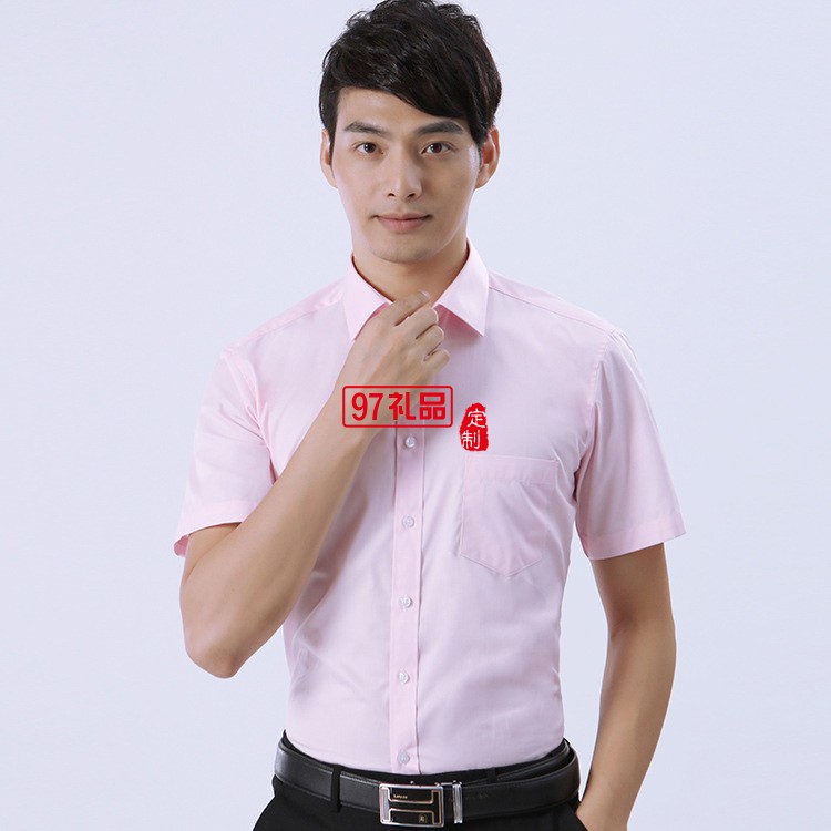 夏季新款粉色男式短袖襯衫 辦公室職業(yè)裝男士商務襯衫