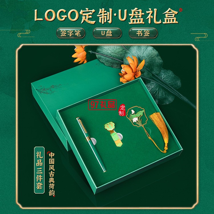 中國風(fēng)禮品U盤書簽金屬本筆記本簽字筆禮品套裝廣告禮品定制