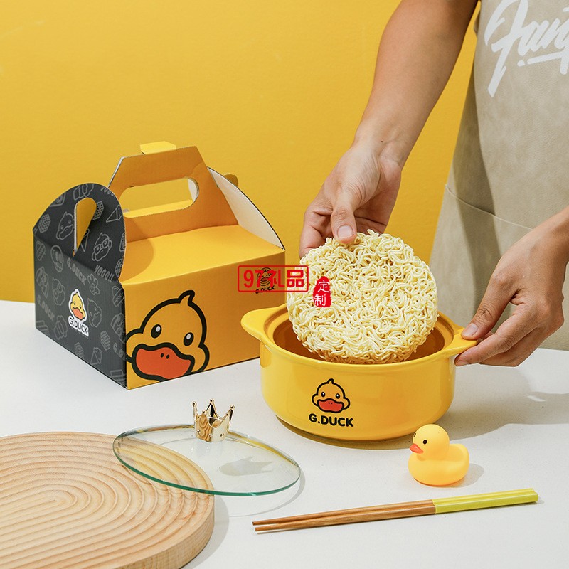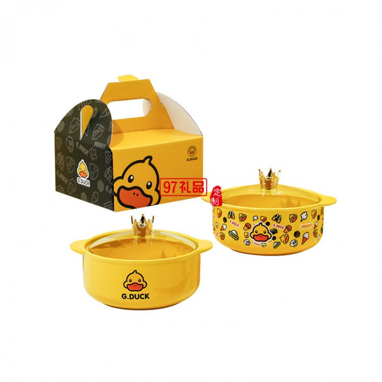 G.DUCK小黃鴨皇冠泡面碗禮盒套裝帶蓋碗禮品套裝陶瓷雙耳碗伴手禮