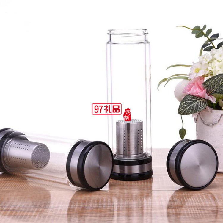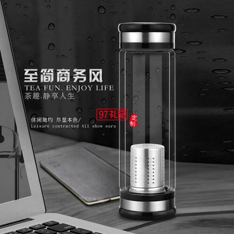 男士商務(wù)水杯雙層玻璃杯廣告禮品杯子定制