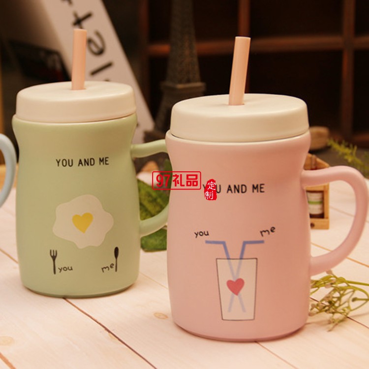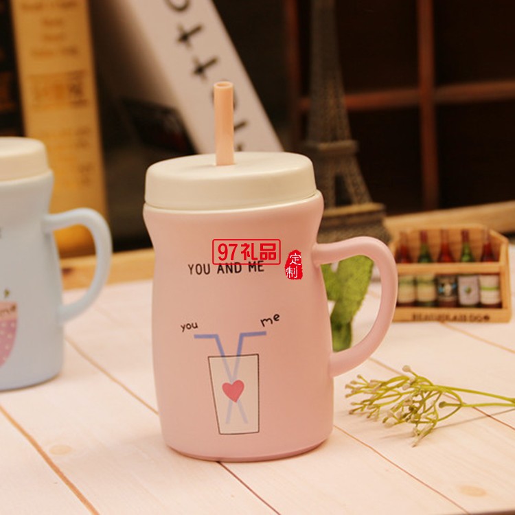 創(chuàng)意吸管馬克杯 隨手早餐杯子 廣告定制