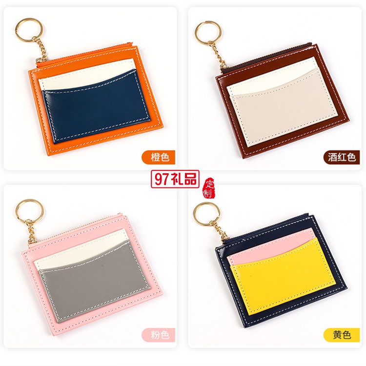 拼接PU卡套簡約商務皮質皮革彩色拼接拉鏈公交