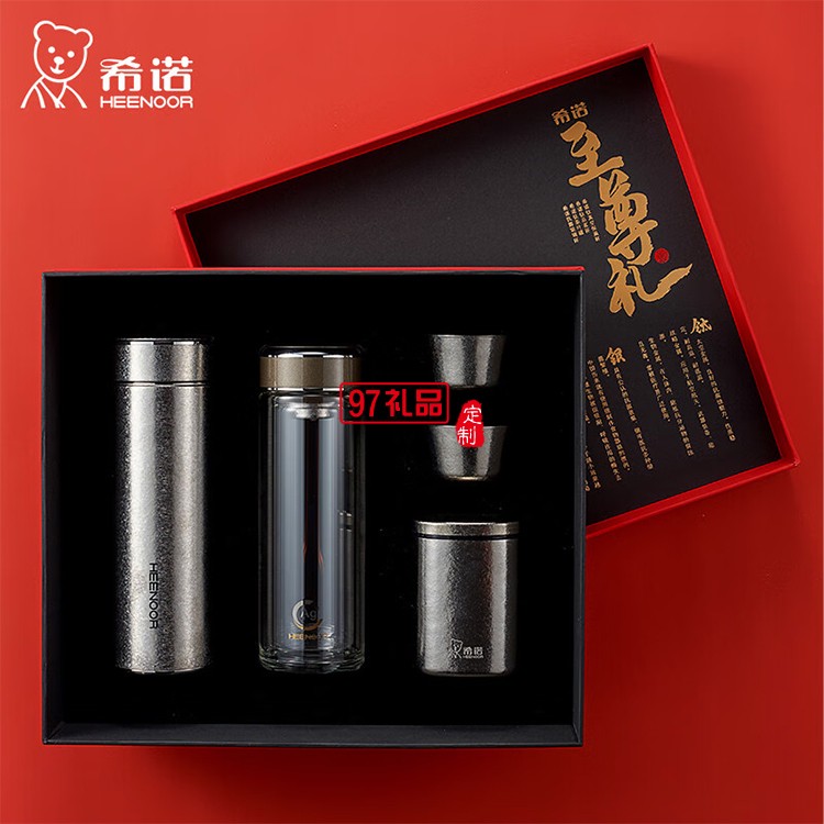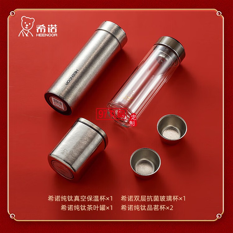 希諾(HEENOOR)至尊禮盒套裝希諾純鈦保溫杯+雙層抗菌玻璃杯