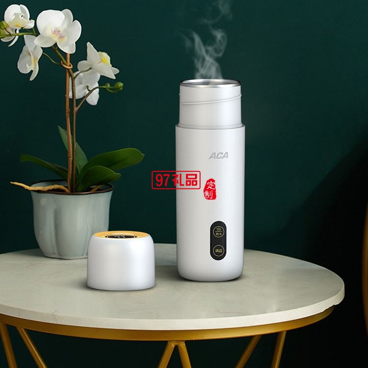 ACA電熱燒水杯全自動(dòng)保溫一體小型迷你不銹鋼旅行杯定制公司廣告禮品
