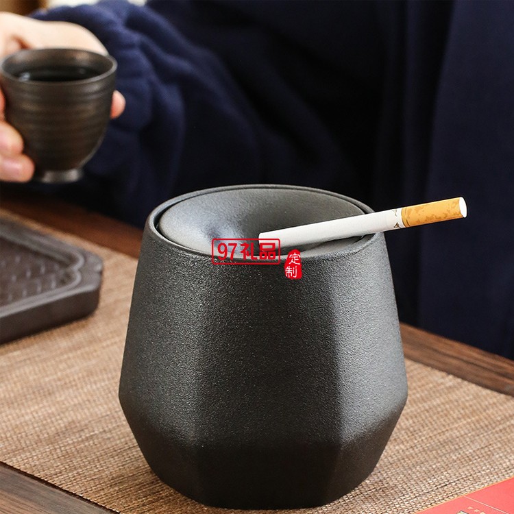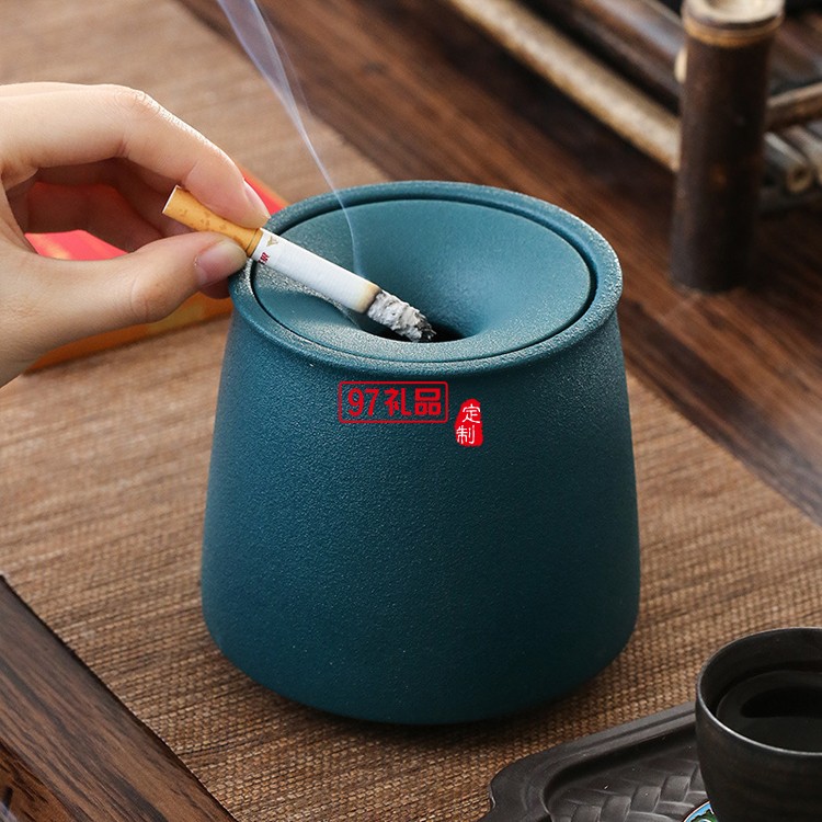 陶瓷煙灰缸個(gè)性時(shí)尚家用客廳帶蓋防飛灰可以定制logo