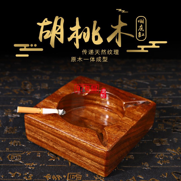 胡桃木煙灰缸創(chuàng)意個性潮流實木煙灰缸訂作logo