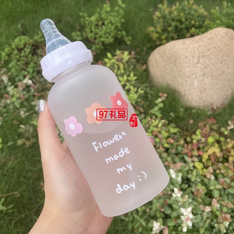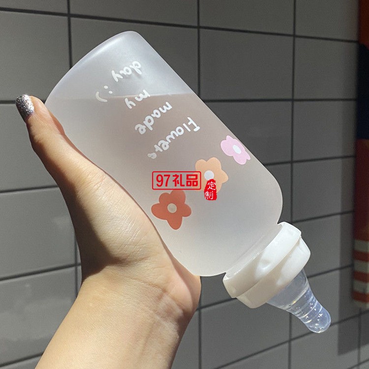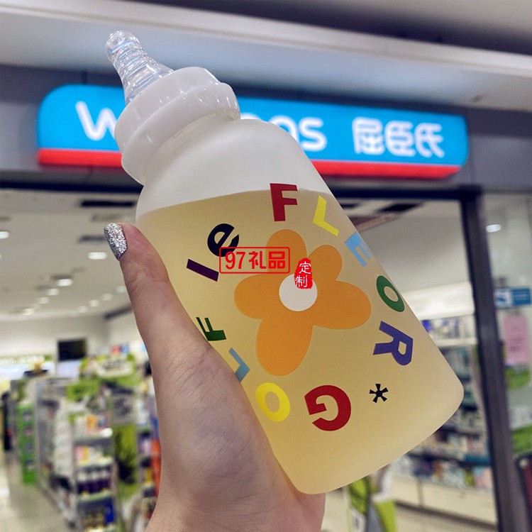 可愛奶嘴奶瓶水杯ins塑料網(wǎng)紅帶吸管杯子