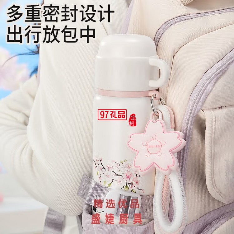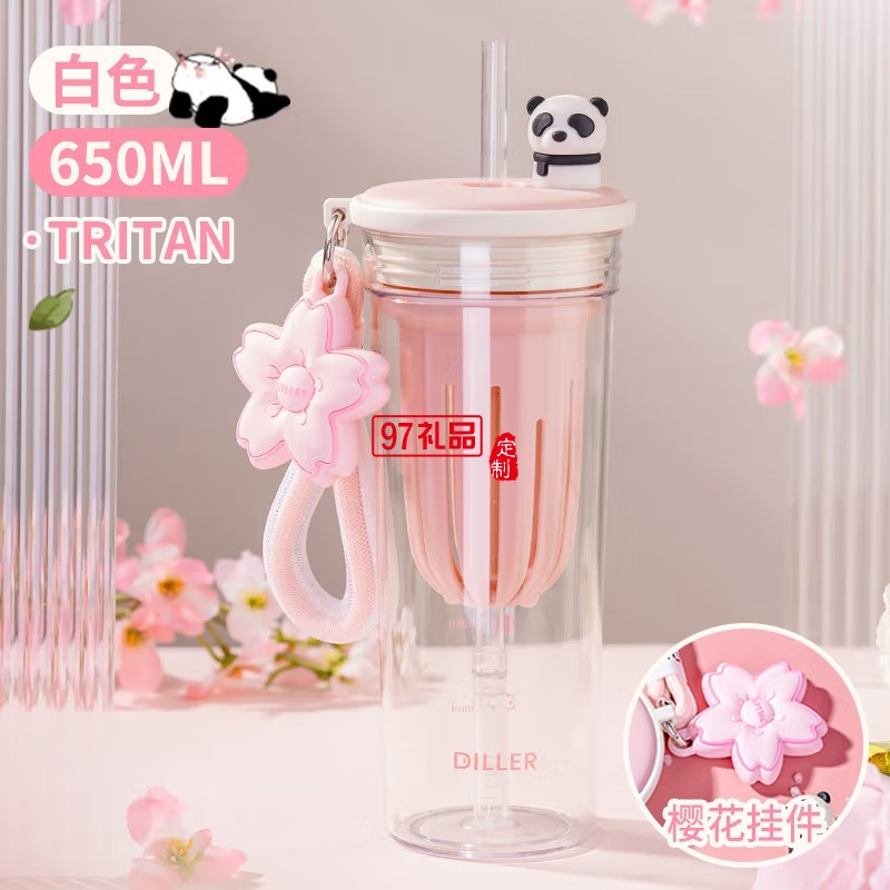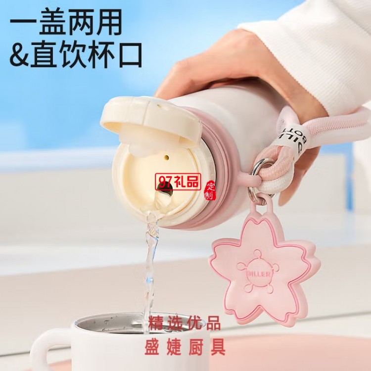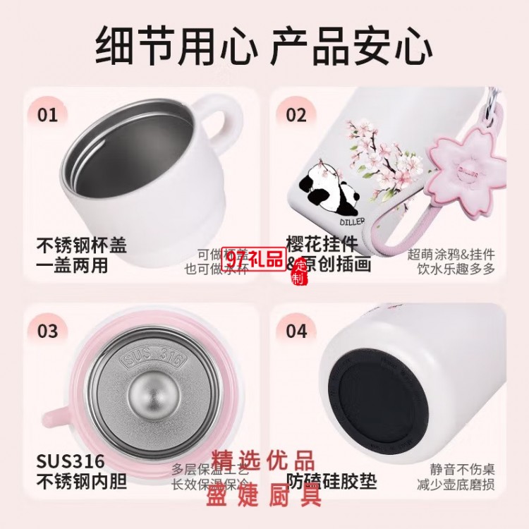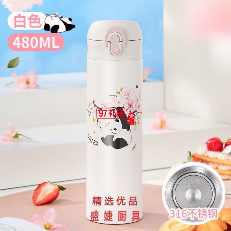 迪樂貝爾熊貓櫻花保溫杯大容量316不銹鋼水杯倒水蓋杯子 女生水杯