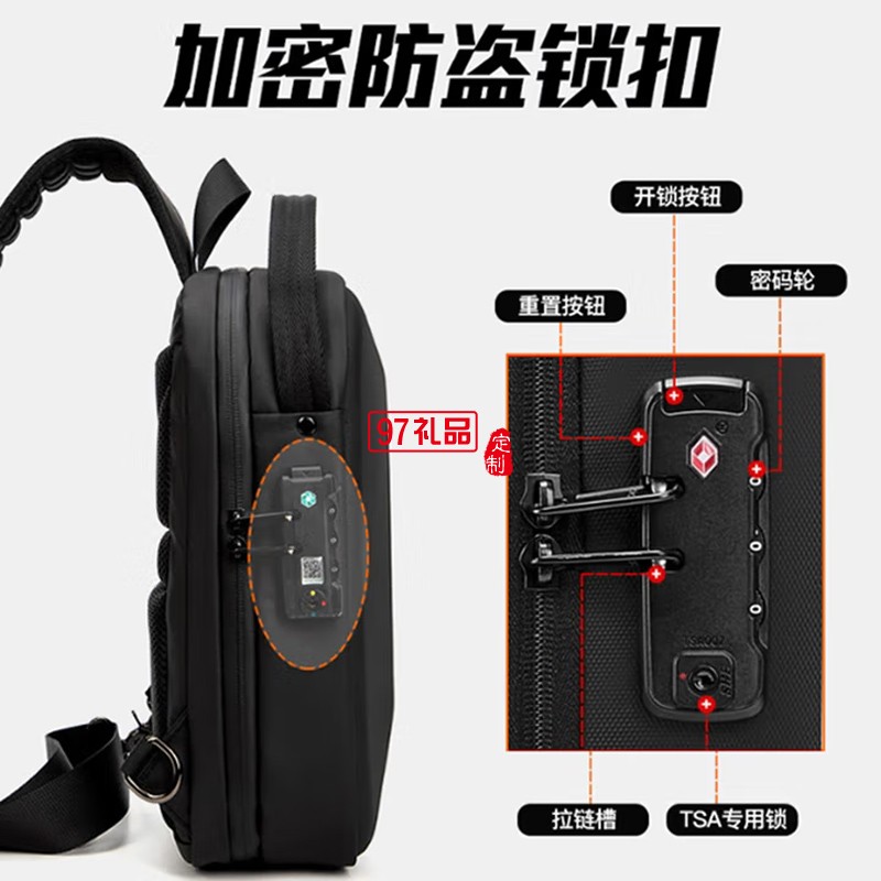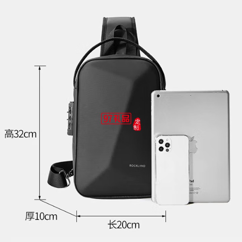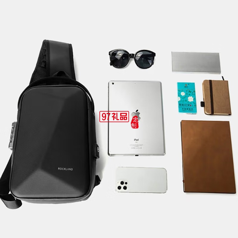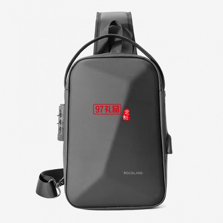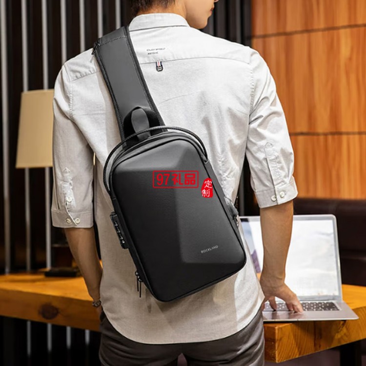 ROCKLAND男士胸包大容量單肩包硬殼防盜斜跨包男休閑辦公胸包 黑色
