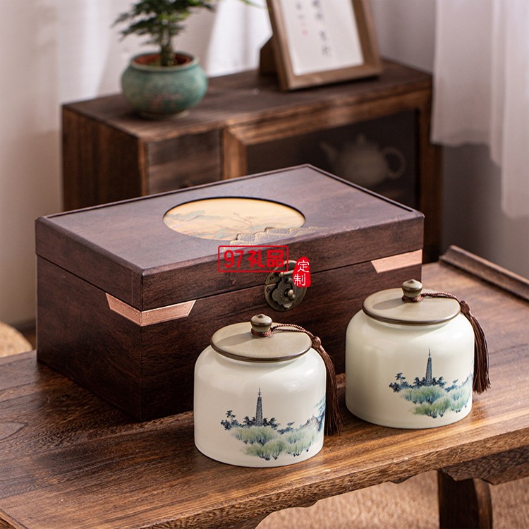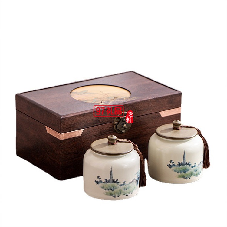 綠茶茶葉包裝盒雙罐陶瓷茶葉