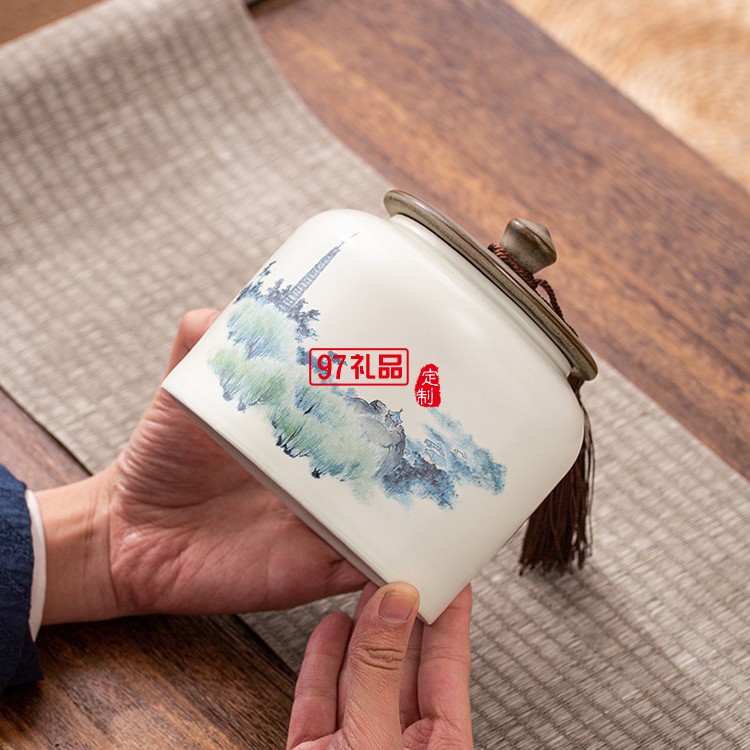 綠茶陶瓷茶葉罐包裝盒空禮盒中國(guó)風(fēng)復(fù)古密封罐