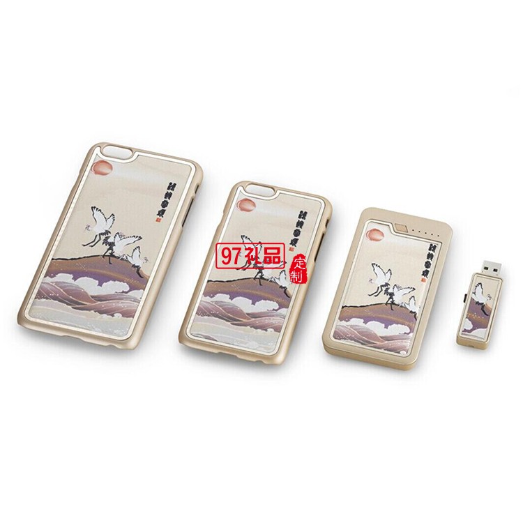 絲綢手機(jī)殼+8GU盤(pán)+5000mah移動(dòng)電源
