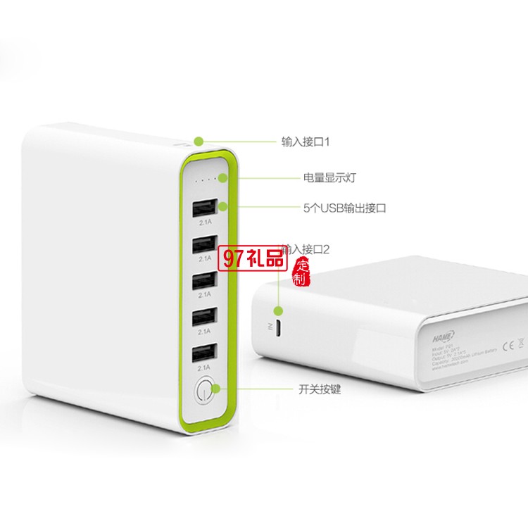 附加功能 多U口輸出 尺寸 115*90*32mm 電源容量 20000mAh