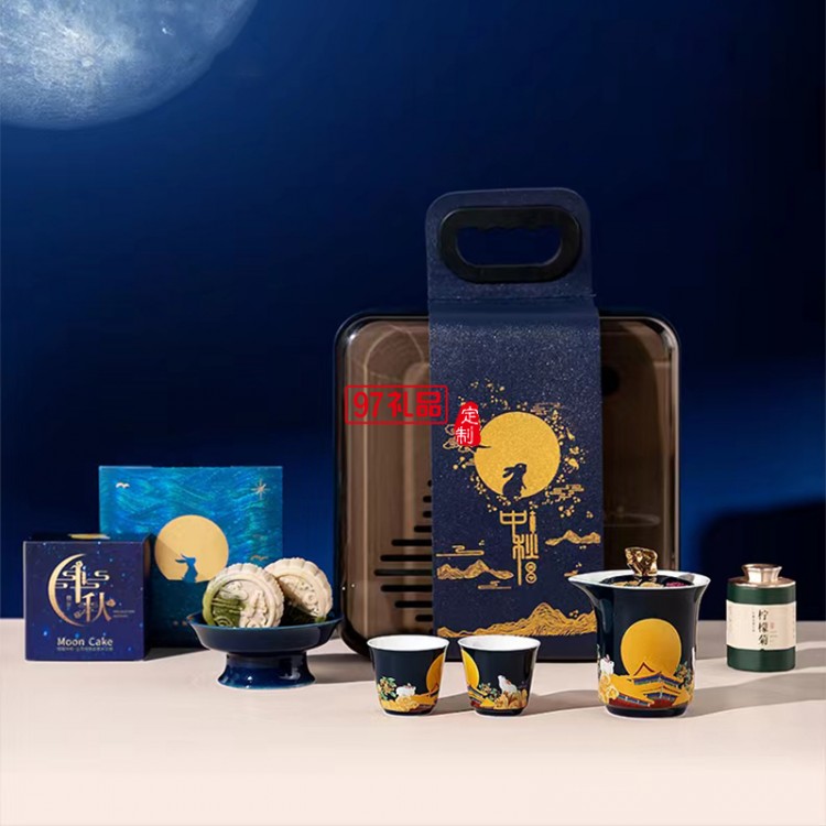 中秋桂月團(tuán)圓?國風(fēng)陶瓷茶具套裝 手繪玉兔品茗杯壺 送禮盒裝
