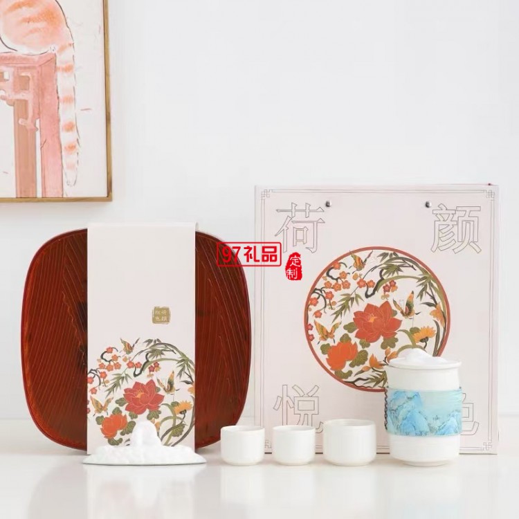 國風陶瓷茶具套裝 手繪玉兔品茗杯壺 家用送禮中秋禮盒裝