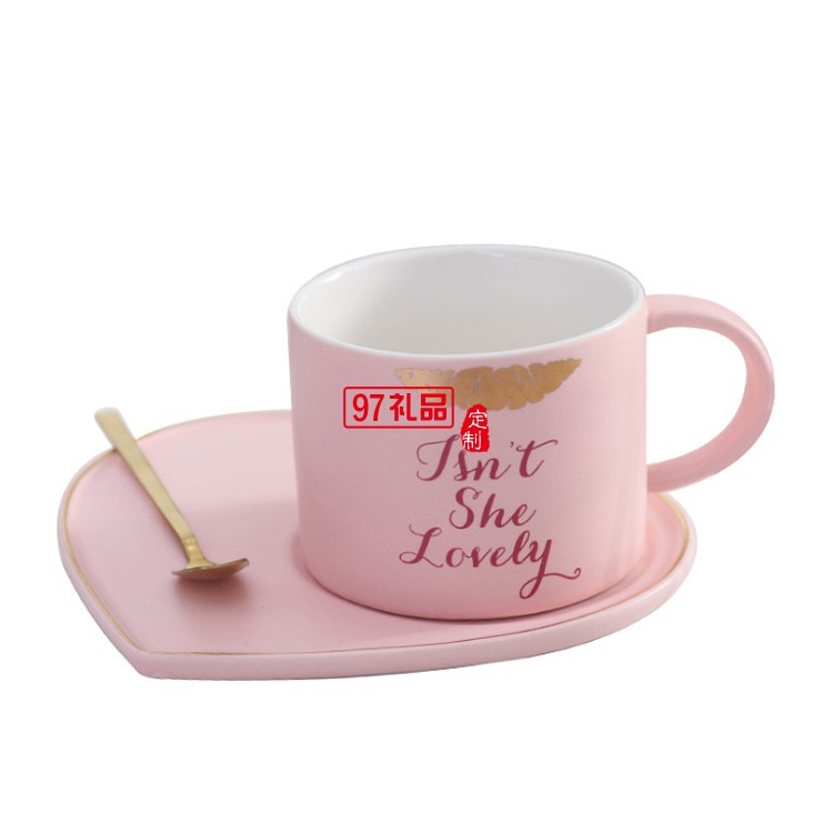 女神愛(ài)心托盤(pán)情侶咖啡杯帶勺創(chuàng)意馬克杯水杯