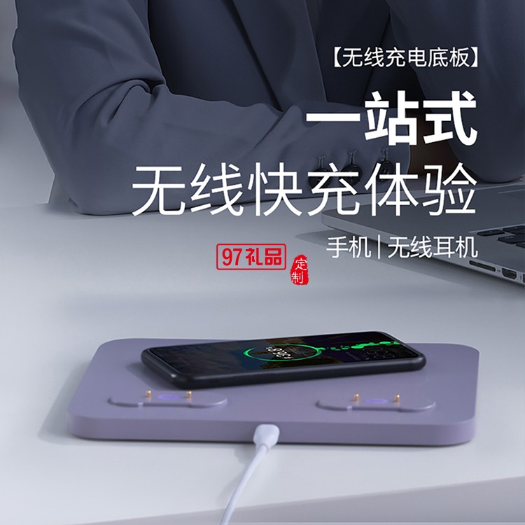 無線小電組合羅蘭紫3件套充電底座 加濕器 拍拍燈套裝定制公司廣告禮品