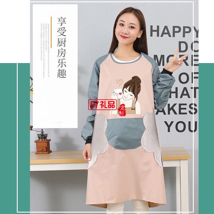 長袖圍裙女家用廚房罩衣大人冬季防水防油工作服男士定制公司廣告禮品