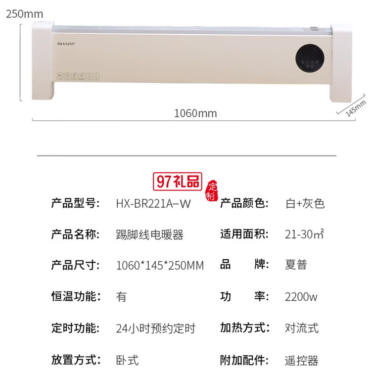 夏普石墨烯踢腳線取暖器電暖器HX-BR221A-W定制公司廣告禮品