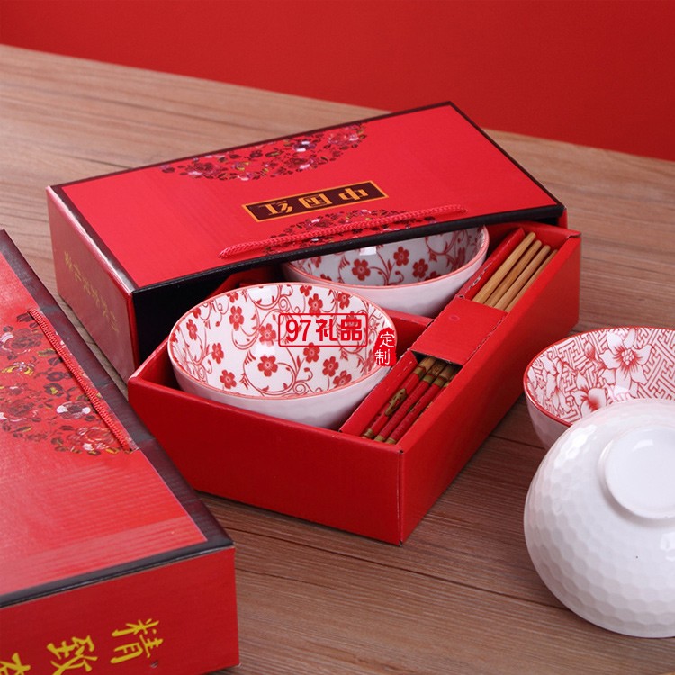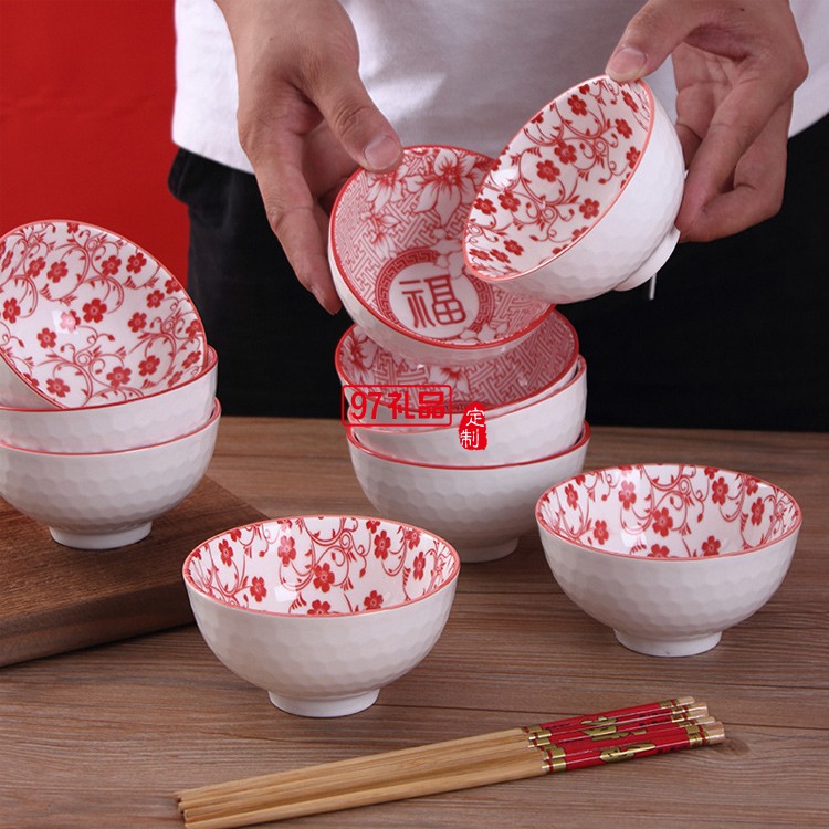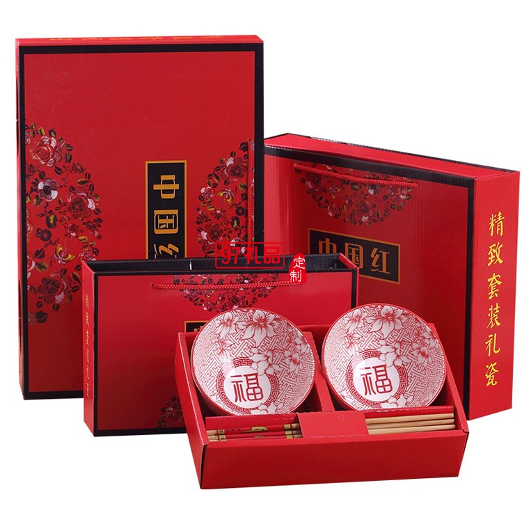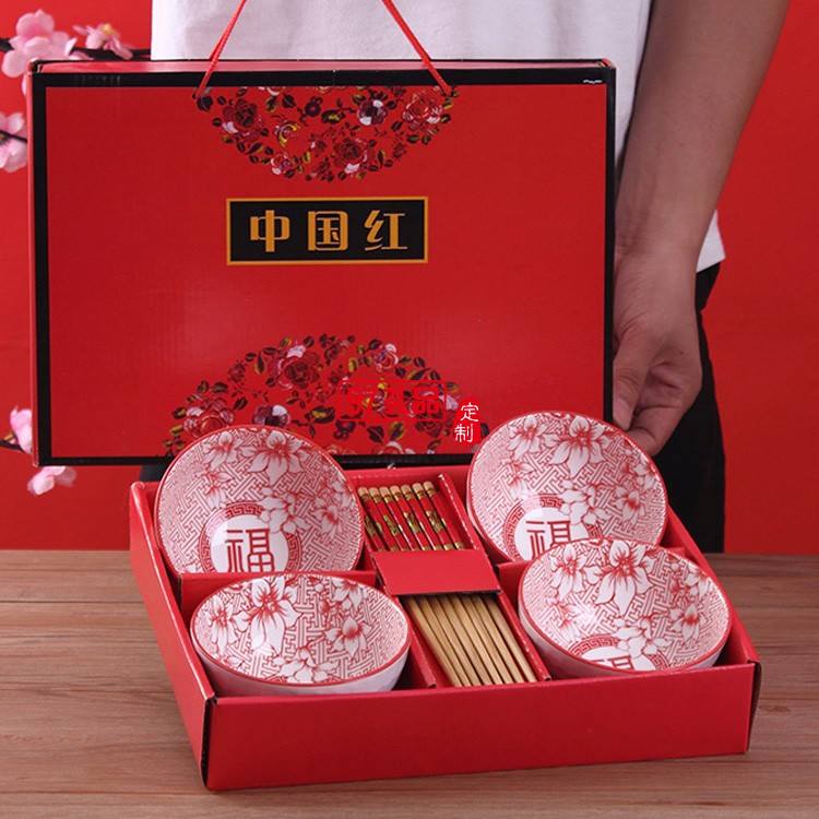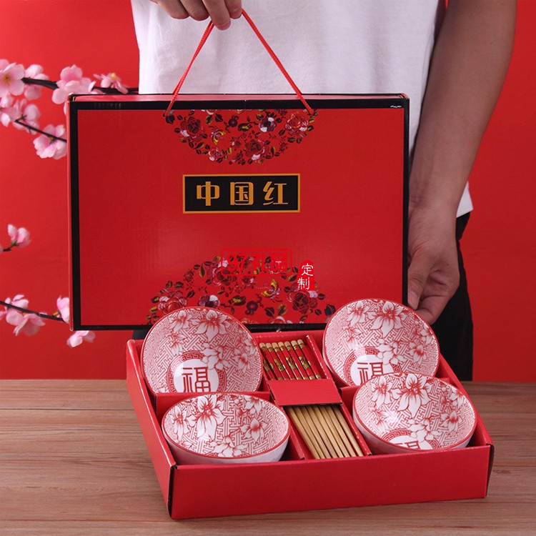 中國(guó)紅陶瓷禮品碗筷套裝餐具創(chuàng)意陶瓷碗盤(pán)套裝公司廣告禮品定制