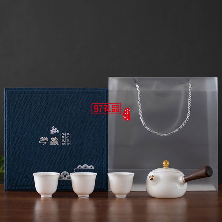 高檔白羊脂玉陶瓷茶具商務(wù)送禮客戶回饋房地產(chǎn)禮品 可定制logo