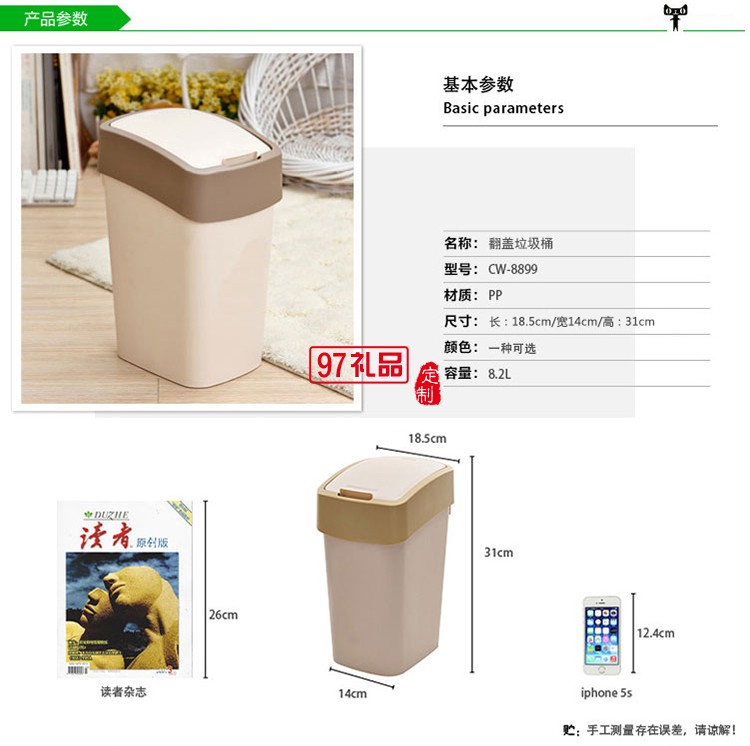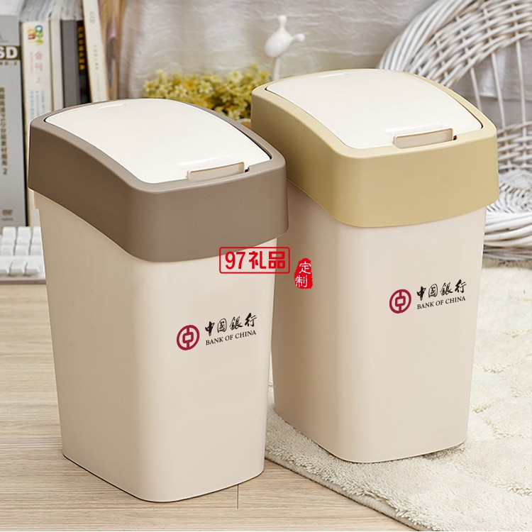 中國銀行定制創(chuàng)意翻蓋垃圾桶家用客廳衛(wèi)生桶可定制logo