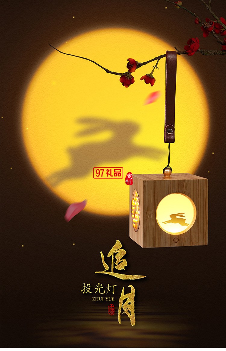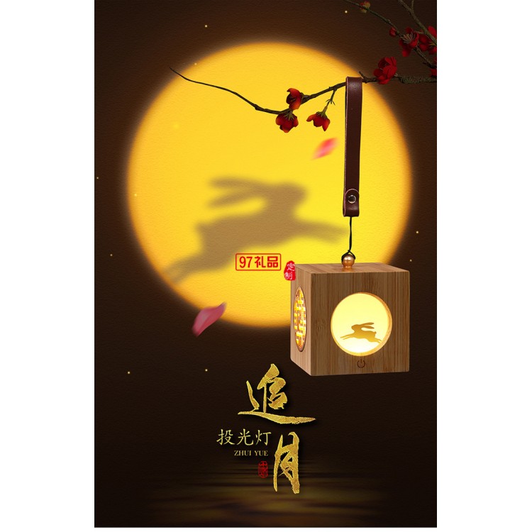 古風(fēng)異見追月投光燈創(chuàng)意中秋禮物氛圍夜燈中國(guó)風(fēng)木質(zhì)燈籠小夜燈