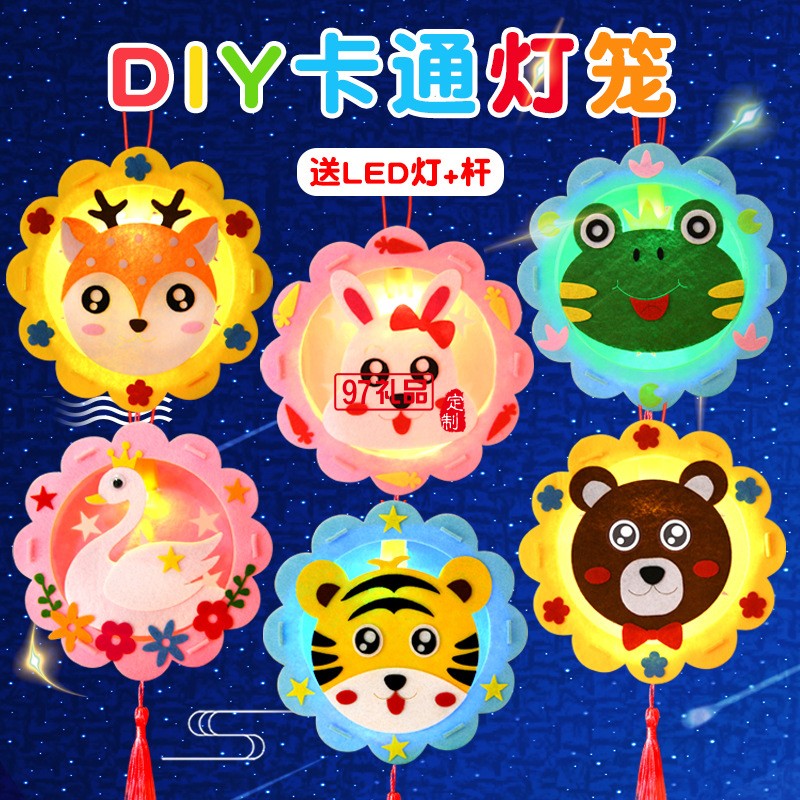 DIY卡通中秋節(jié)燈籠手提幼兒園手工發(fā)光燈籠兒童不織布材料包玩具