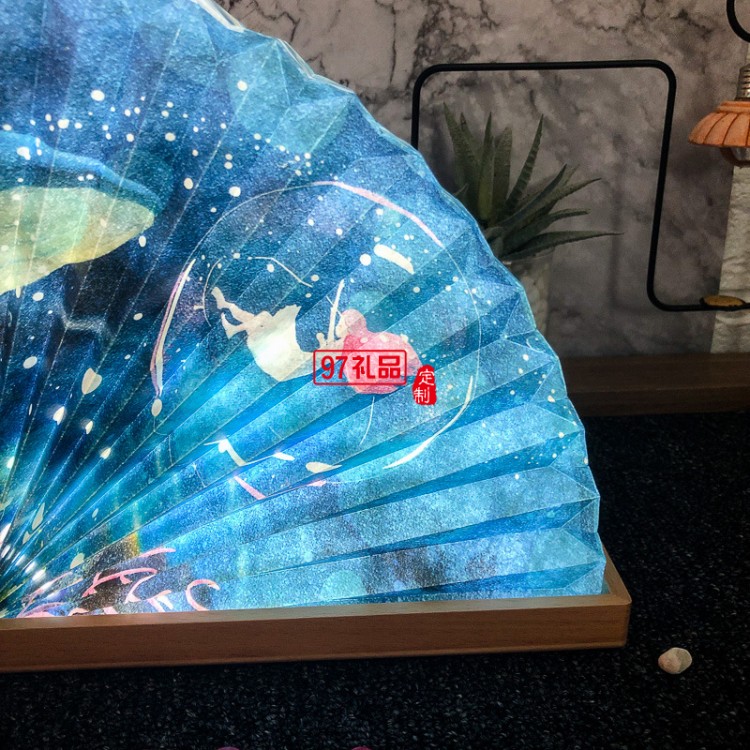 中秋禮品定制簡約實木氛圍床頭扇燈工廠批發(fā)企業(yè)禮品定制小夜臺燈