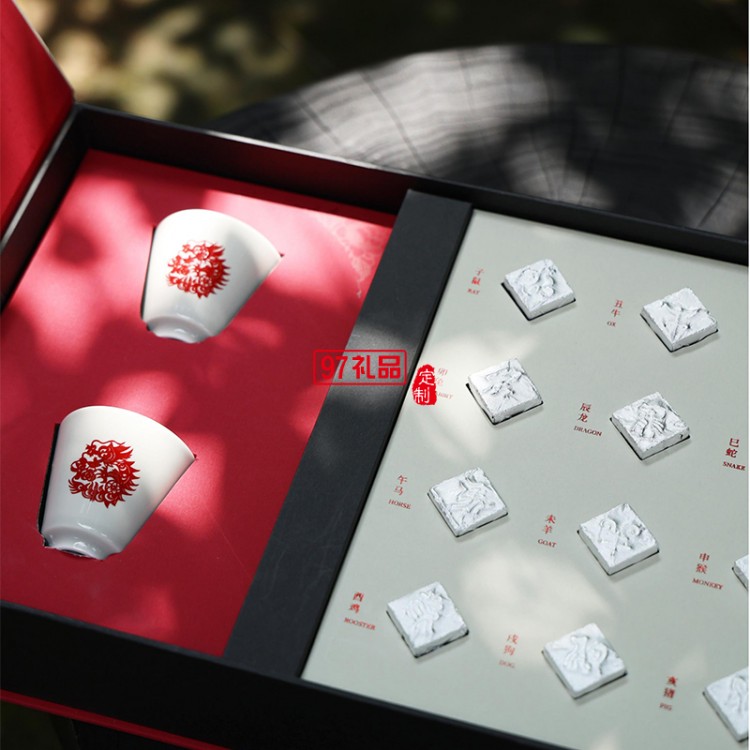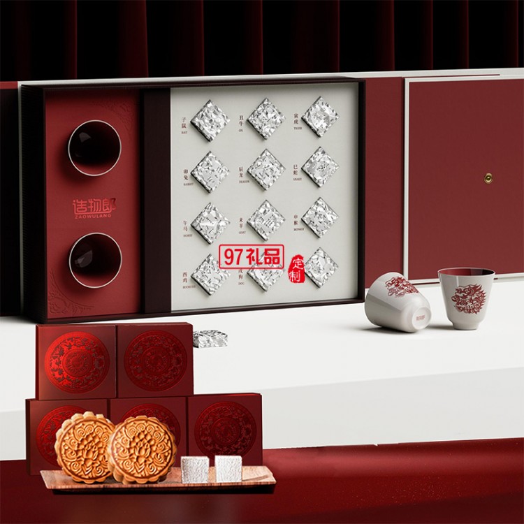 龍盞吟秋十二生肖活字茶磚龍紋杯中秋月餅定制高檔禮盒