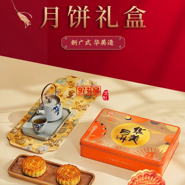 華美月餅420g情意金秋禮盒裝蛋黃鳳梨紅豆多口味中秋節(jié)送禮