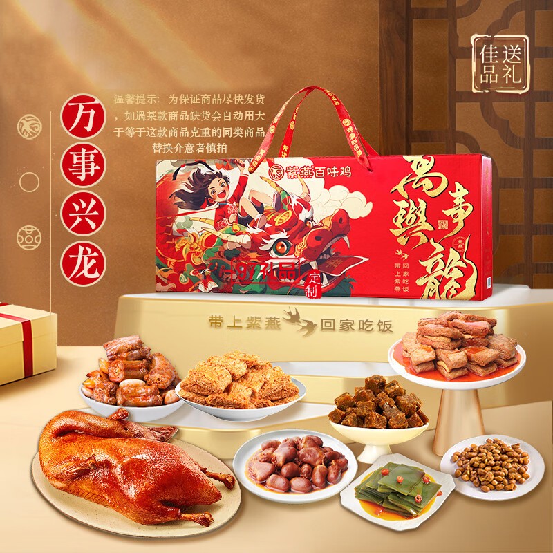 紫燕百味雞鹵味熟食即中秋禮盒高端烤鴨心海帶花生牛肉粒萬(wàn)事興龍880g